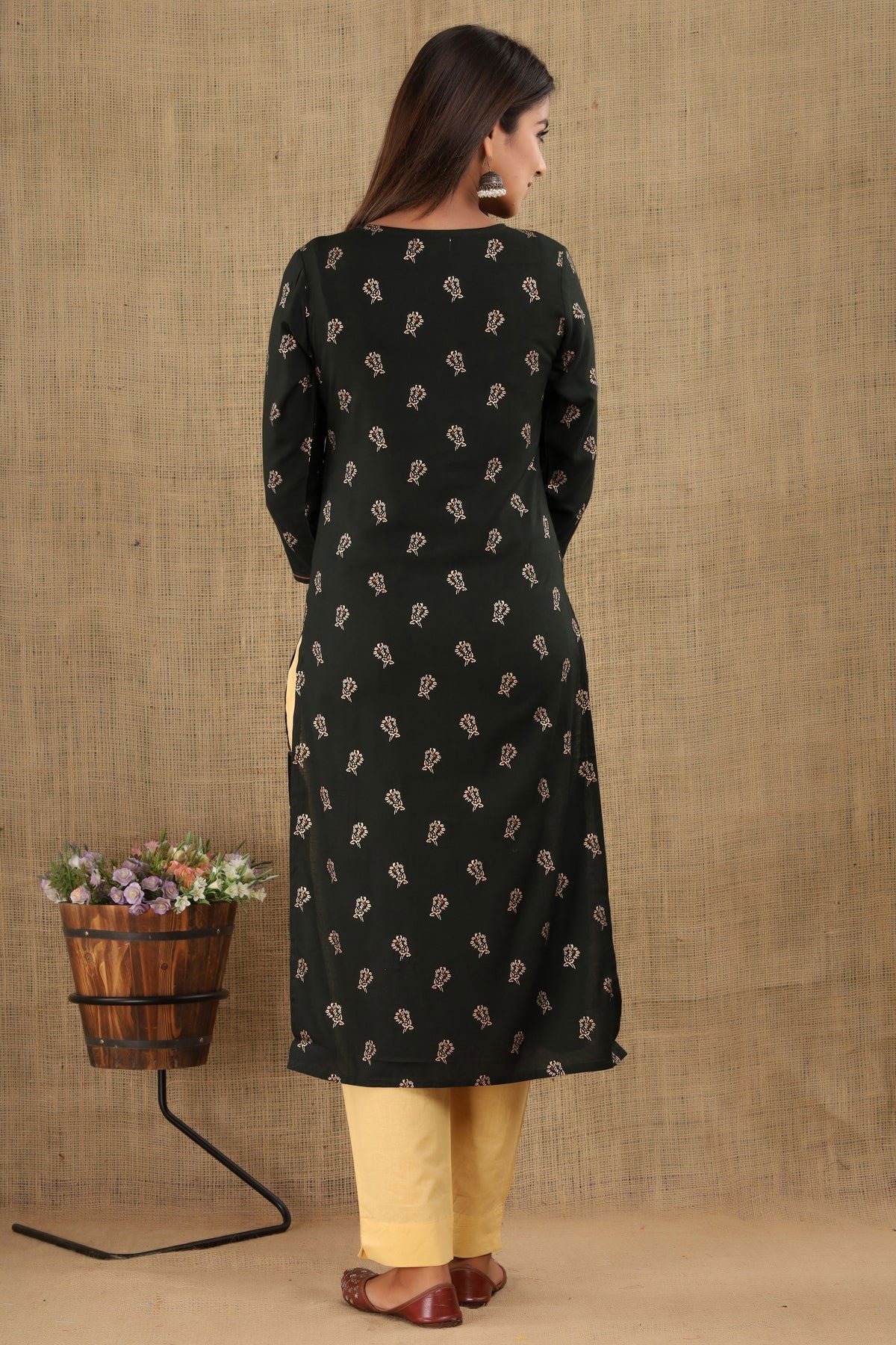 Elegant Bottle Green Printed Straight Kurta Set with Matching Pants and Dupatta (Set of 3)