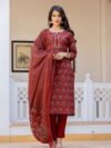 Elegant Rust Red Ajrakh Print Cotton Kurta, Pant & Dupatta Set – Perfect Trio for a Stylish Look!